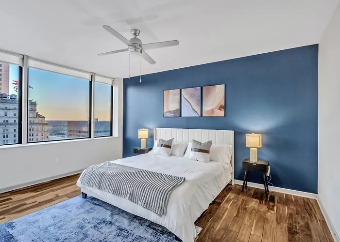 The apartment lies in the Main Street district of Dallas, 17 minutes' stroll from the Perot Museum of Nature and Science. Guests can easily reach the Dallas Arts District, which is around 200 metres away.